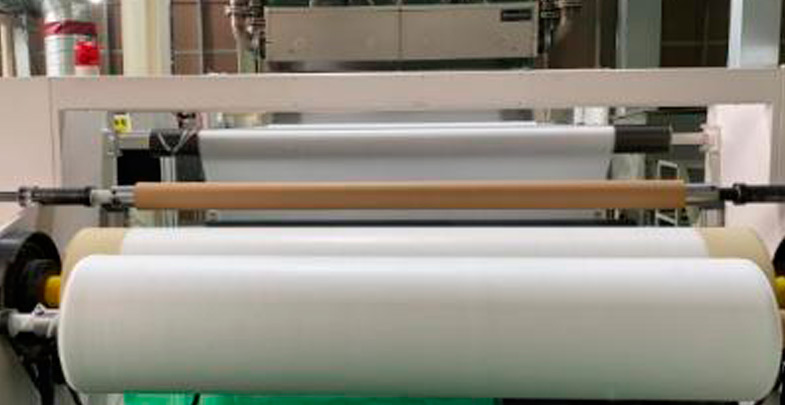 過濾用熔噴是以PP或其他聚合物為主要原料,采用熔噴技術(shù)制造的。聚合物原料在擠出機(jī)中加熱和熔化,擠出機(jī)提供壓力,將熔融聚合物和纖維推向傳送帶。為了達(dá)到高過濾效率性能,隨后應(yīng)以不同的方式在成型的熔噴織物上充注靜電。